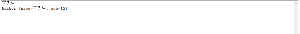 return "Author [name=" + name + ", age=" + age + "]";