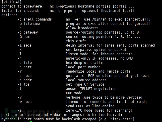使用格式: nc [-参数] 主机名 端口[s] [端口] …