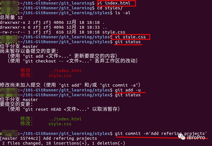 git add -u:之前已经添加进分支的,更新后直接使用 -u即可.