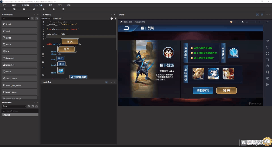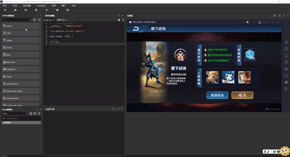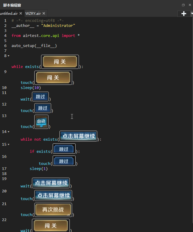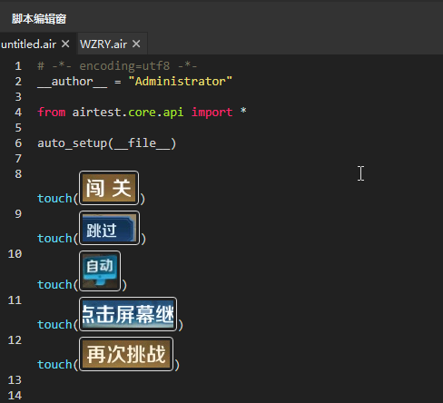 但是录制完脚本依然还是需要人工进行一定的调整,当然这里只应用了Airtest图像识别,如果需要复杂的操作,建议结合其他模块。