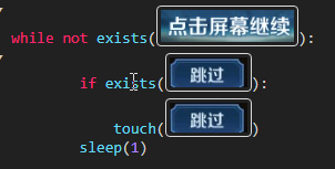 3)因为游戏过程中有不定时“挑过”提示,所以我们需要加上点exists()判断和while循环。