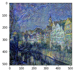 那么最终实现的办法,就是我们生成一张图片,然后得到一个损失函数$loss=contentloss+styleloss$,然后我们用梯度下降让损失函数最小就可以了。