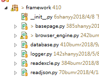 framework:自动化测试框架的支撑,主要实现功能为对selenium一些常用方法的封装,配置文件的读取、测试数据的读取,浏览器驱动的调用,日志文件的创建等;