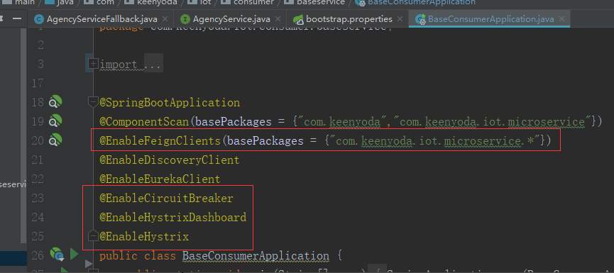 1). Feign内部已经支持了断路器,所以不需要想Ribbon方式一样,在Spring Boot启动类上加额外注解