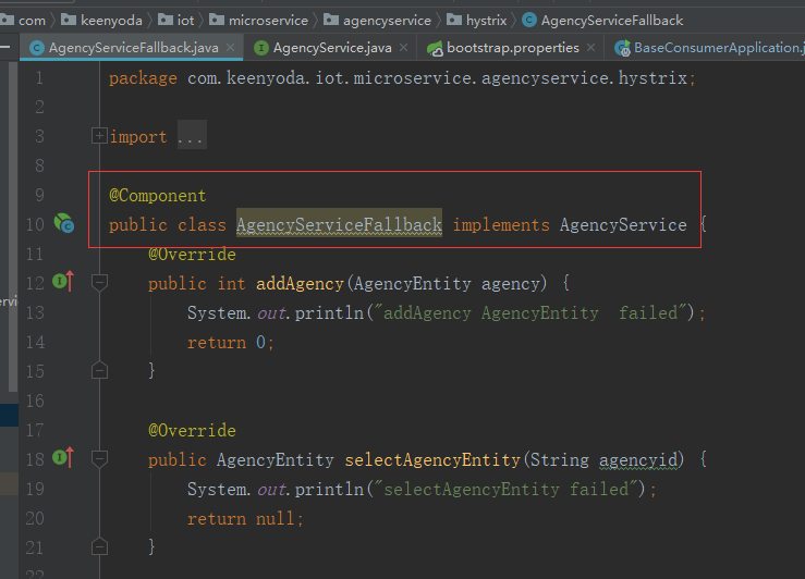 3). 创建一个实现类, 去实现被@FeignClient修饰的如上图中的接口。注意添加@Component或者@Service注解,在Spring容器中生成一个Bean