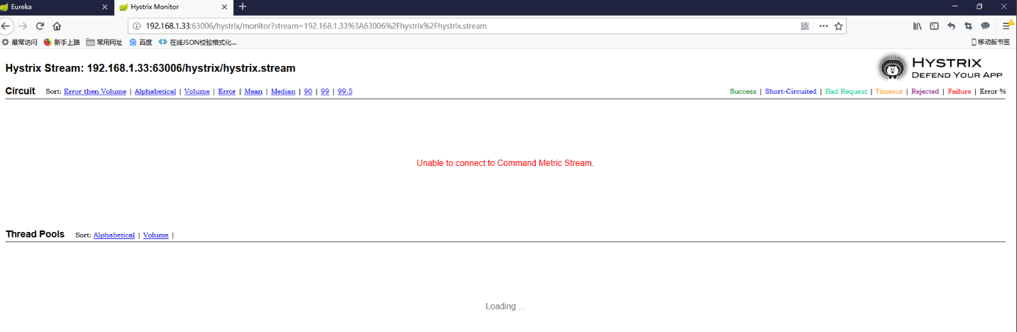 在dashboard中输入服务的URL:点击 monitor后进入监控界面,访问Feign服务http://192.168.1.33:63006/可以看到监控UI动态变化