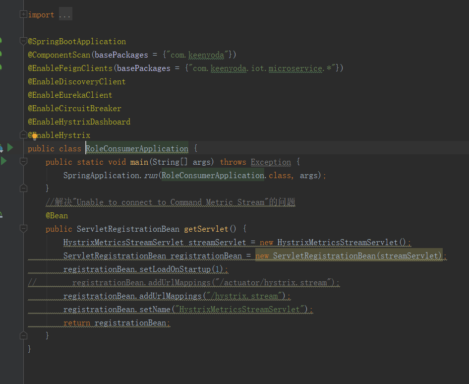 7 // registrationBean.addUrlMappings("/actuator/hystrix.stream");