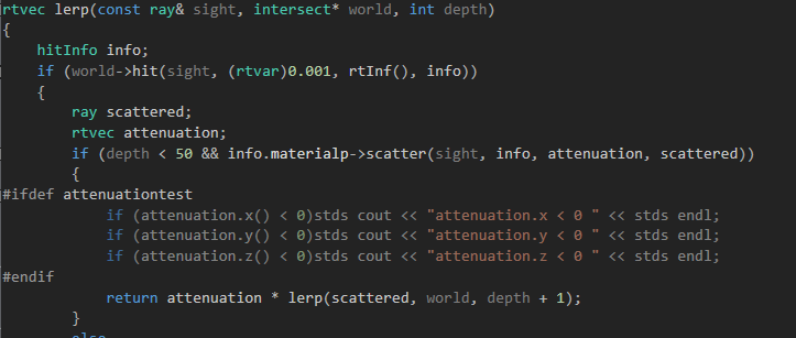 bool lambertian::scatter(const ray& rIn, const hitInfo& info, rtvec& attenuation, ray& scattered)const
