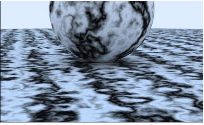 程序纹理的入门是大理石纹理, 基本思想是使颜色与正弦函数成比例,并使用turbulence来调整相位,能使条纹起伏