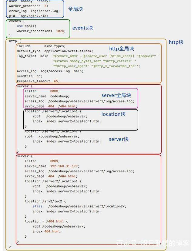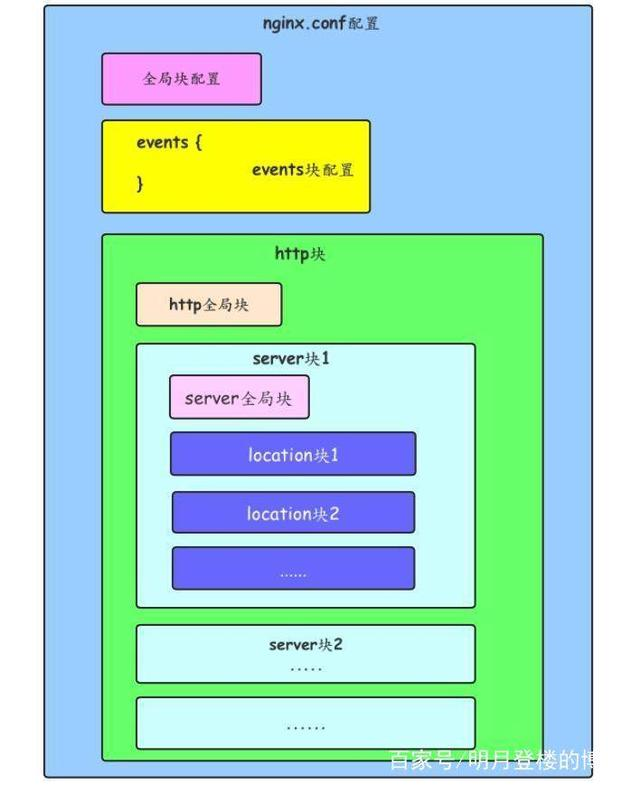 可以嵌套多个server,配置代理,缓存,日志定义等绝大多数功能和第三方模块的配置。主要包括: