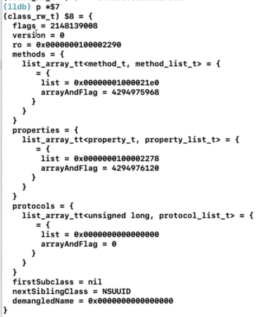 然后,我们打印*$7,就能打印出对应的class_rw_t了: