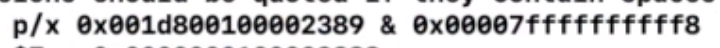 我们发现,直接打印0x100002358是打印不出来的。0x100002358是bits的首地址,也就是bits的指针,因此我们需要强转一下,如下: