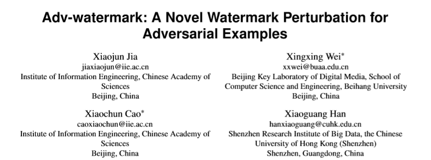 论文标题:Adv-watermark: A Novel Watermark Perturbation for Adversarial Examples