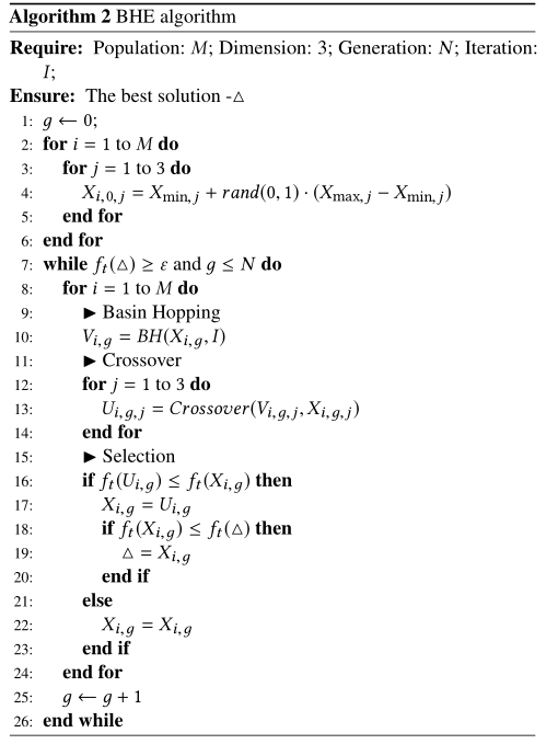 BHE是一种基于群体进化的优化算法,个人感觉BHE这就是一种普通的粒子群算法,适合求解非凸函数的最优解或者是局部最优解。每个解决方案都是一个群体的个体。其中 、 和 元素被认为是其基因。