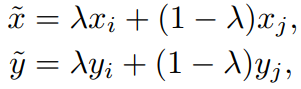 提供一种简单数据无关的数据增广方式,mixup,对训练数据集中数据任意两两线性插值: