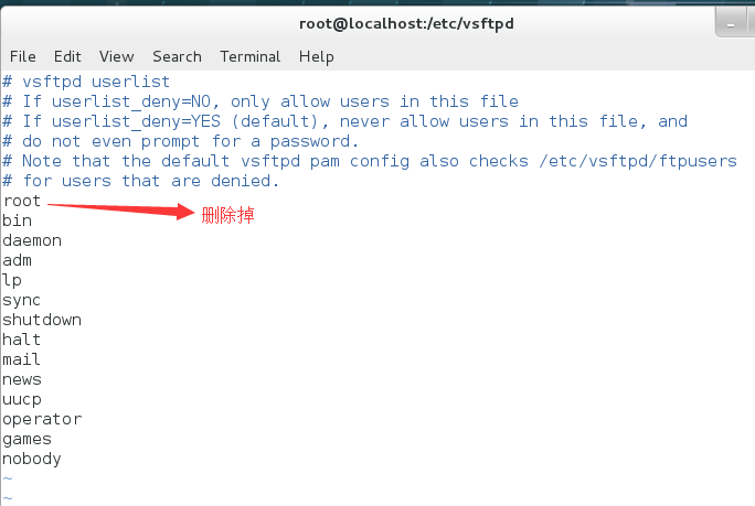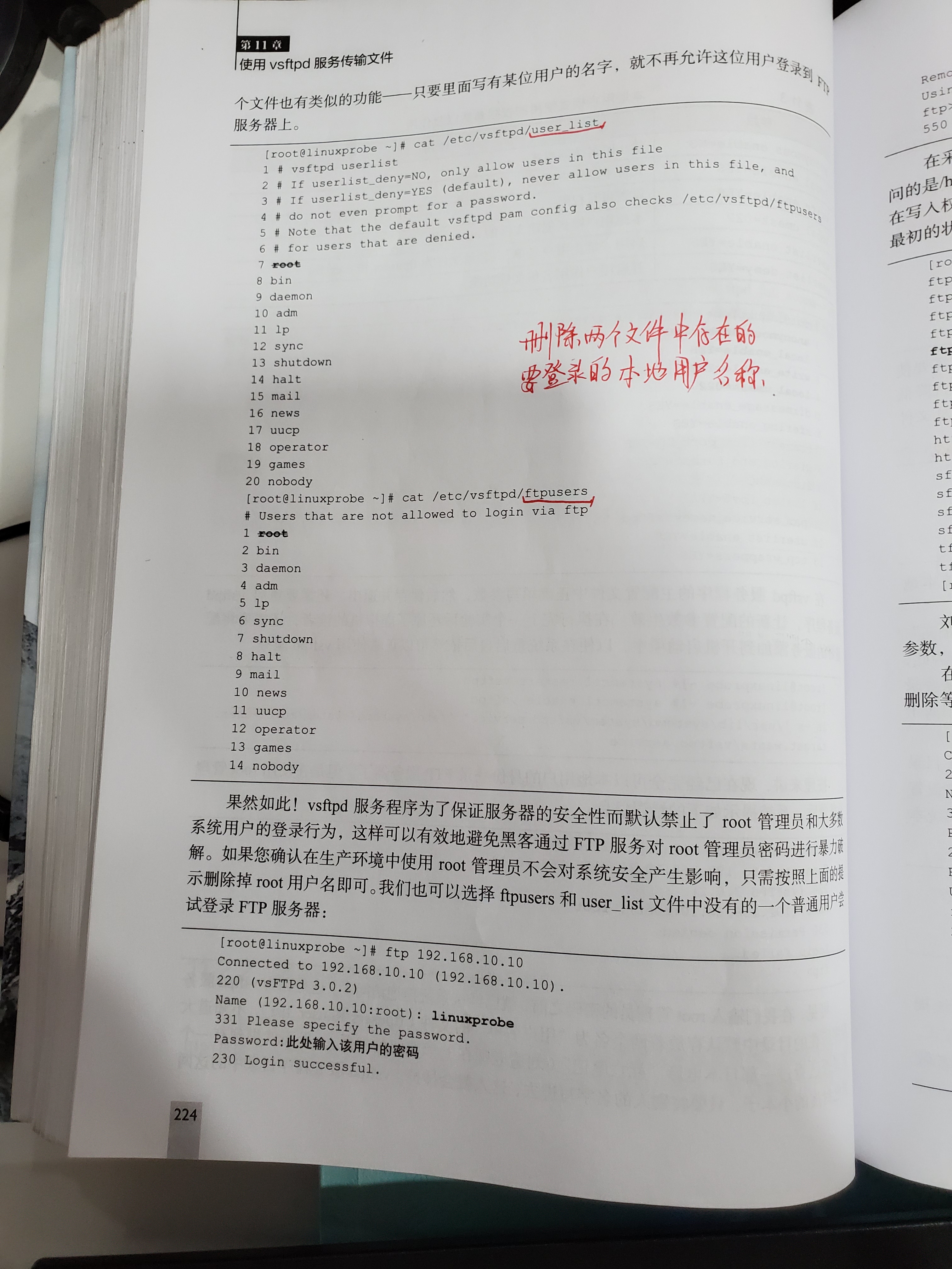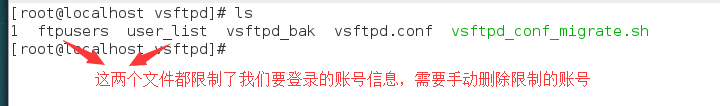 因为本地用户登录存在两个黑名单文件,所以,我们需要解锁要登录的账号,黑名单文件在/etc/vsftpd目录文件下