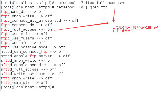 再次连接ftp尝试创建还是报错,究其原因是selinux的域在捣乱