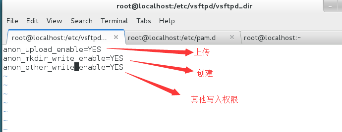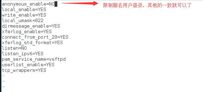 和匿名用户一样,精简出vsftpd.conf,并按照下图修改