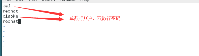 首先需要在/etc/vsftpd目录文件下创建一个虚拟用户账户密码的文件,文件名称为vuser.list