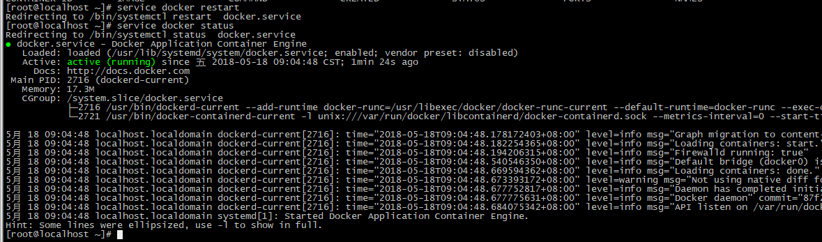 3.重启(reboot) 完成后,进行docker的启动(service docker restart) ,则成功