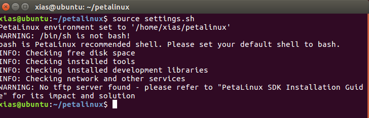 然后安装petalinux在ubuntu下的使用环境,使用命令