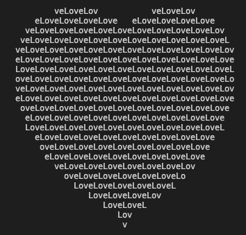 print('\n'.join([''.join([('Love'[(x-y) % len('Love')] if ((x*0.05)**2+(y*0.1)**2-1)**3-(x*0.05)**2*(y*0.1)**3 <= 0 else ' ') for x in range(-30, 30)]) for y in range(30, -30, -1)]))