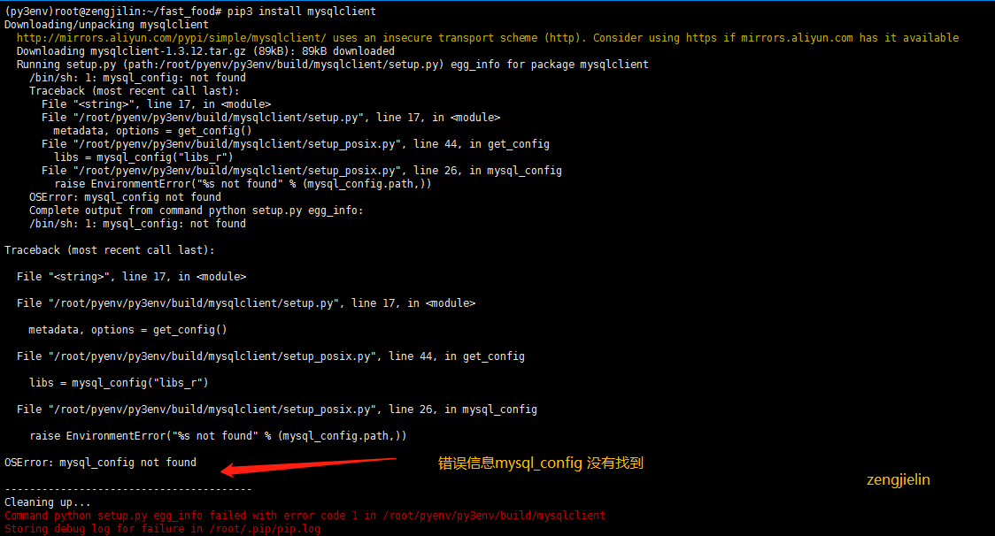 不料出错了,现在我们需要安装libmysqld-dev就可以解决这个问题