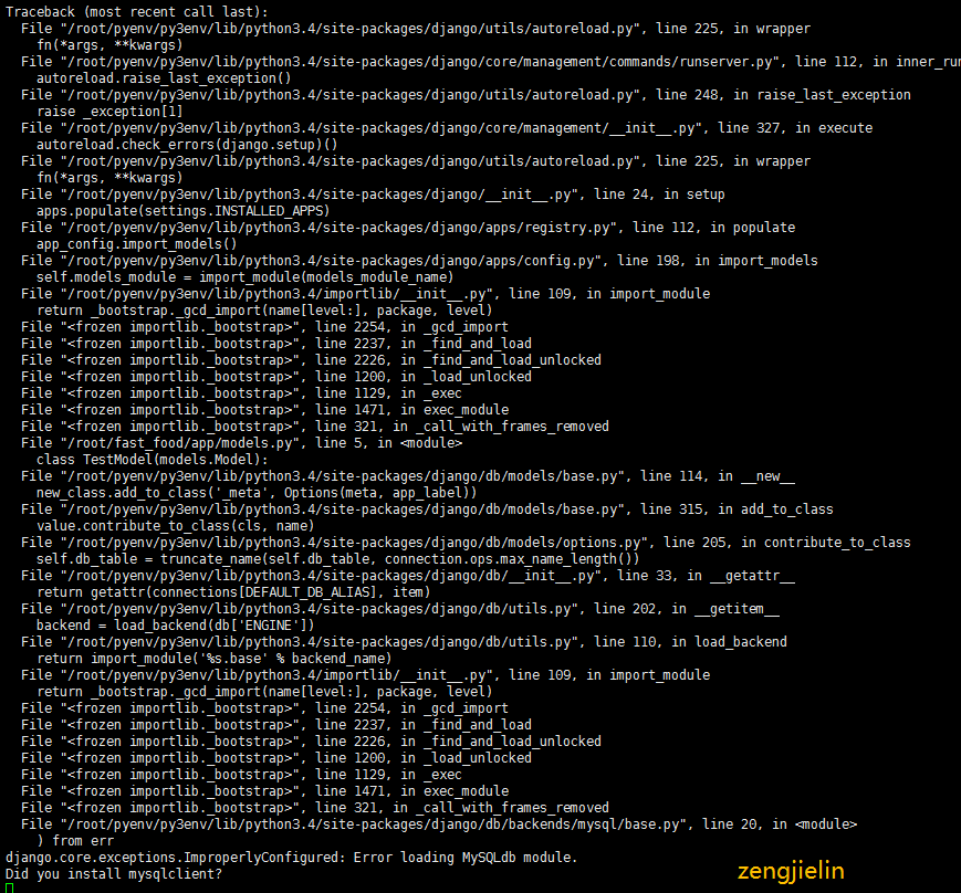 有一个提示 Did you install mysqlclient?提示我们安装mysqlclient