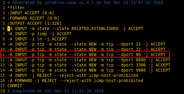 -A INPUT -p tcp -m state --state NEW -m tcp --dport 80 -j ACCEPT