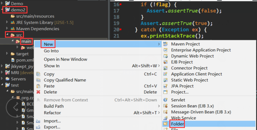 选中项目名称-->右键刷新-->你会发现java文件夹跑到了上面