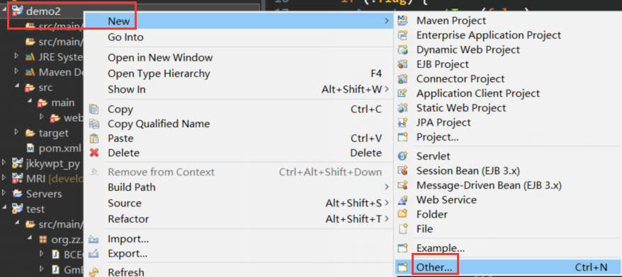 选中项目-->右键-->New-->Other(Ctrl+N)