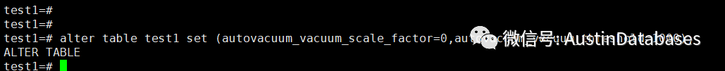 alter table test1 set (autovacuum_vacuum_scale_factor=0,autovacuum_vacuum_threshold=1000);