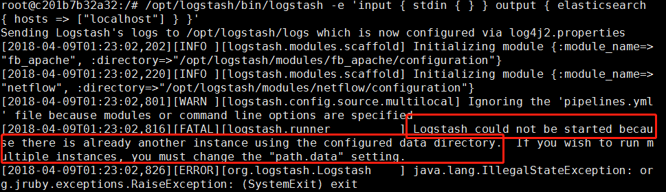 报错:如果看到这样的报错信息 Logstash could not be started because there is already another instance using the configured data directory.