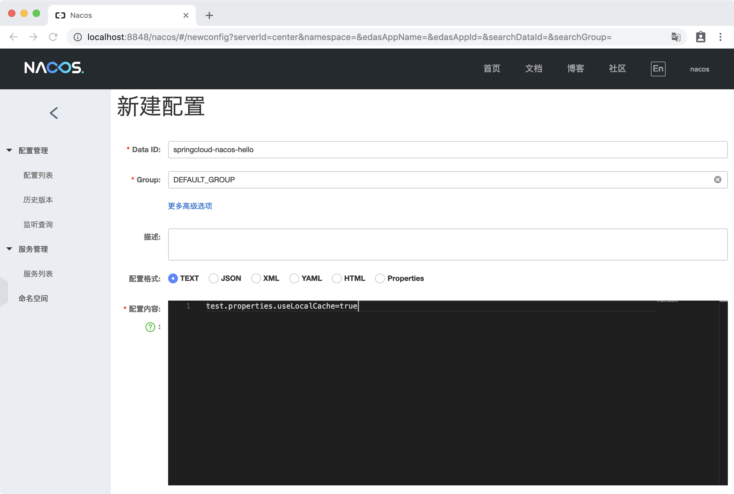 重启了 Nacos server ,你会发现原先创建的配置依然,这说明不是内存存储的。