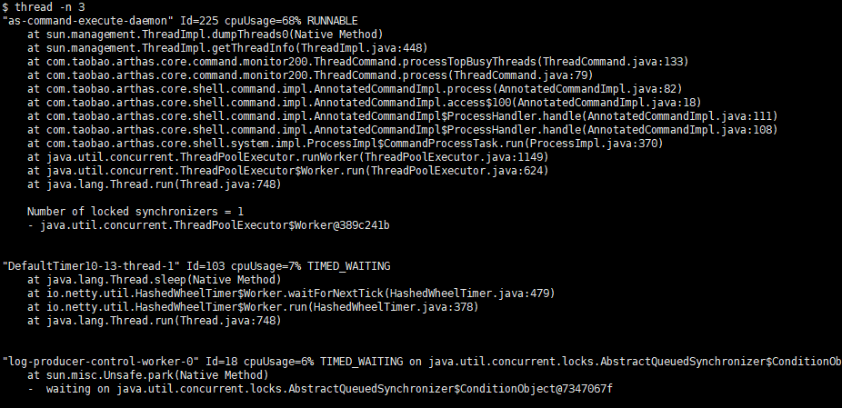thread -n 3 # 查看最繁忙的三个线程栈信息