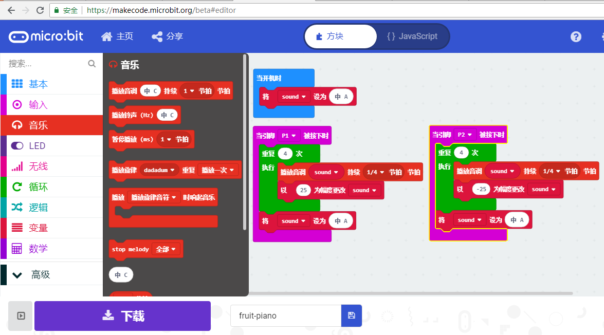 程序网址:https://makecode.microbit.org/_c0L32Cbsd6cx