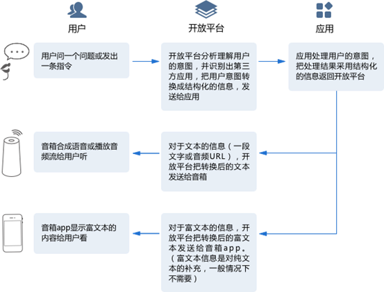 从上图中可以看到,用户与设备之间的交互,主要是采用语音方式处理和完成的。