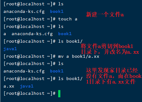 剪切或改名命令:mv(move) 剪切文件:mv(源文件目录)(目标目录);