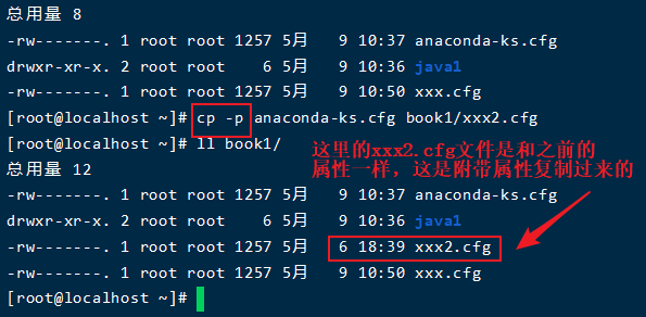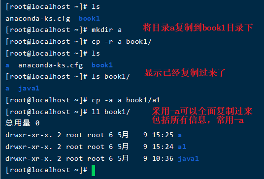 选项:(这里对应上述的cp命令中的选项); -r 复制目录