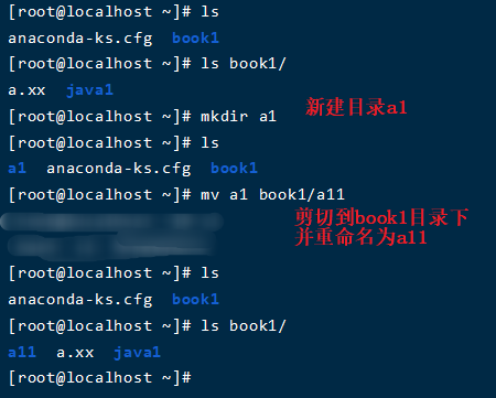 剪切或改名命令:mv(move) 剪切文件:mv(源文件目录)(目标目录);