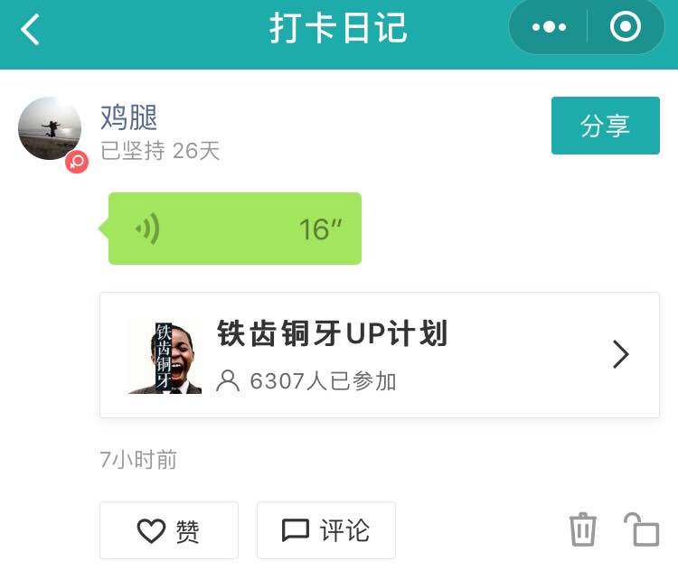 ##铁齿铜牙 | 气沉丹田 去年参加了“铁齿铜牙|气沉丹田”(那时还不叫这个名字)微信群,主要让教师练习发声,缓解声带长期振动带来的一些疾病。娄老师发起“做教练”之好声音训练,我们每天积极练习吐唇音,说绕口令,学习气沉丹田之法。我那时每天上班路上需要先走15分钟走到轻轨站,我就利用这15分钟练习吐唇音和绕口令。之前刚一吐就没气,而且嘴也不会打嘟。我一边走一边嘟,走在人多的地方很奇怪,我就选人少的路走,一边走一边练习。后来经过不断练习,嘴也可以打嘟了,大概也可以坚持10秒钟以上了。以前每个学期的第一次课我都累得半死,一节课的后半段基本上就嗓子也哑了,说话也没气了。这学期一周20节,周五结束,依然可以正常发声,还是很有效果的。“铁齿铜牙|气沉丹田”群里不知道是谁发现了一个练习发音的小程序,每一段话都有原文录音,群里的小伙伴们都开开心心的每日读一小段话打卡。但这个打卡对我来说没有什么难度,自认为普通话发音还算标准,自己还是更应该加强气息的练习,让自己可以更好的控制气息和节奏。