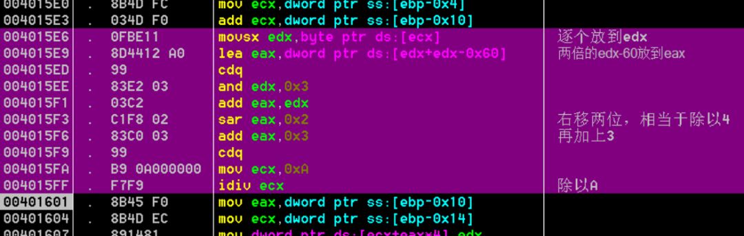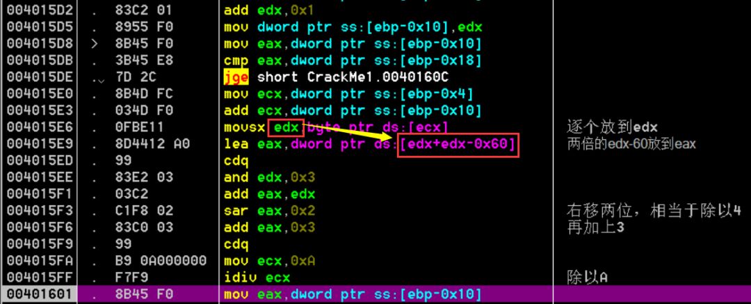 在刚开始一直不知道这里的数是怎么出来的,在心里把[edx+edx-0x60]当作一个地址了,后来发现,这他妈的不是存放的刚赋值的字符嘛!!