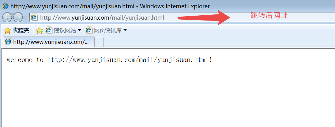 外部跳转时,使用这种方法可以让浏览器地址变为跳转后的地址,另外,要事先设置http://www.yunjisuan.com/mail/yunjisuan.html有结果输出,不然会出现401等权限错误。