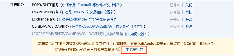开启之后,点击“生成授权码”。这个授权码将作为邮箱的身份认证密码。