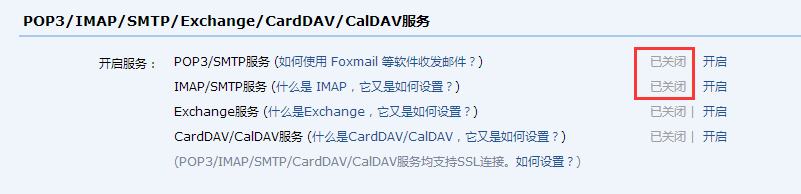 找到“POP3/SMTP服务”和“IMAP/SMTP服务”项,点“开启”。