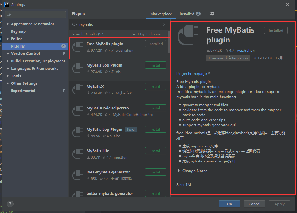 大家在写mybatis的接口和接口对应的mapper.xml文件的时候,因为xml配置文件没法对应,更不能跳转,十分不友好,装上这个插件以后,可以实现从mapper接口跳转到mybatis的xml文件中。