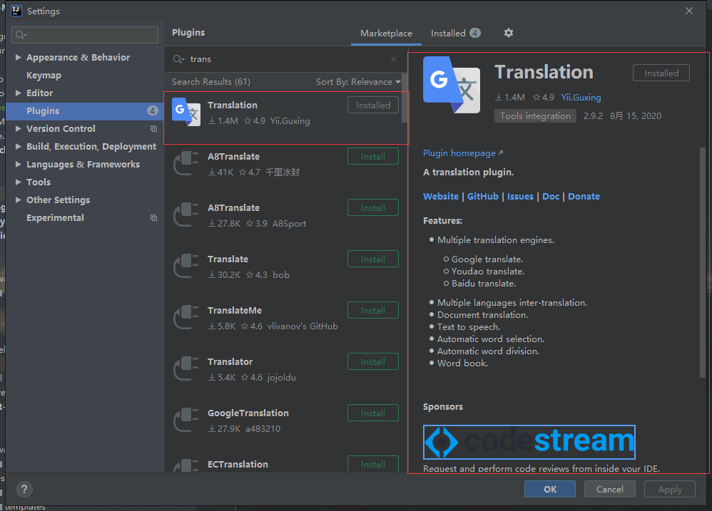 对于英语不好的同学来说这个功能可谓是coding必备,不管是看源码,还是看别人代码中变量名的意思,都十分重要。