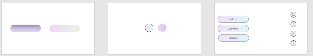 这套画图模板首先提供了多种基础组件,比如表示过程、操作或转换的圆角矩形,表示神经元或任意操作的小圆圈,表示向量的一排小方块以及表示多维数组的网格等。
