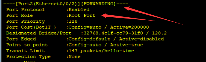 非根桥(ALTE:替代(阻塞)端口,DESI:指定端口,ROOT:指定端口)