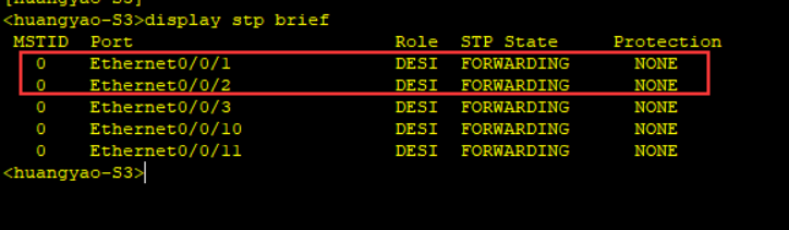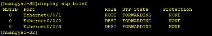 还可以使用display stp brief命令在S2,S3,S4上仅查看摘要信息。